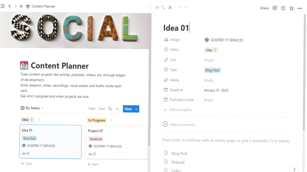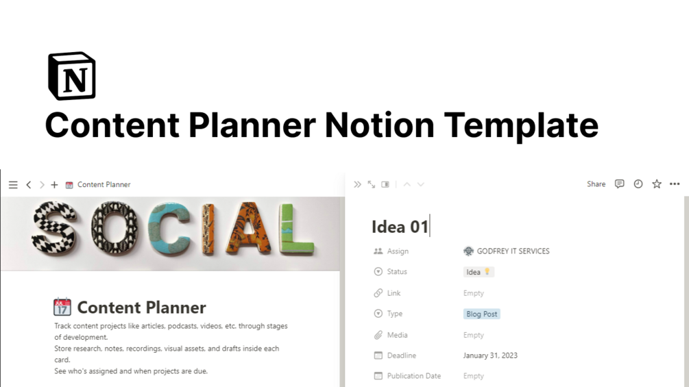This template is designed to help you plan and organize your content in an efficient and effective way. With this template, you can easily create a content calendar, track project progress, and collaborate with team members. The template includes various features to help you stay organized and on top of your content. You can easily create a calendar to plan your content for the month, track progress on projects, and collaborate with team members. You can also set up reminders for upcoming deadlines and tasks, as well as track analytics to measure the success of your content. The template is easy to use and customize, so you can make it work for you. Whether you’re a content creator, marketer, or business owner, this template will help you stay organized and get the most out of your content. Get started today with the Content Planner Notion Template! Get it now.